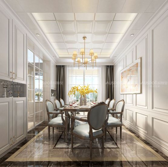 假如居室的空间高度适当富余,便可以选择安装“层次型”吊顶。简单来说,就是在一级吊顶的基础上再增加一层,然后构成两个明显的层次,层级越多,就越有层次感,尤其适合层高较高的别墅房型。