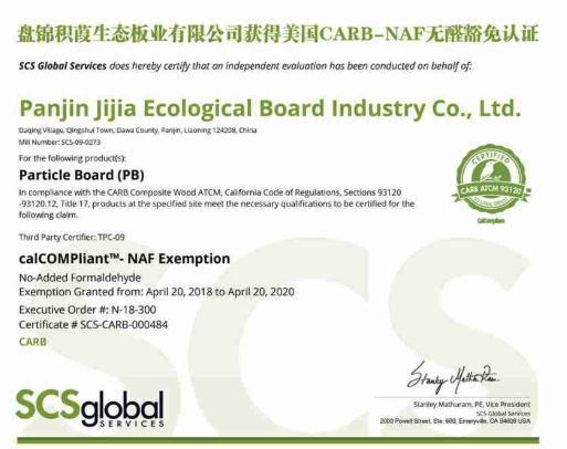 首先你得先认识什么是CARB-NAF“无醛豁免认证”。CARB-NAF“无醛豁免认证”,是美国加州空气资源委员会(CARB)颁发的认证标准,是CARB中最严格的认证,远高于CARB认证中的P1、P2的认证标准,取得该认证的板材在生产过程中不可使用任何含有甲醛成分的胶粘剂。