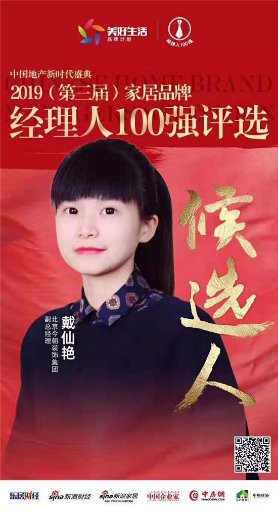 新浪家居讯由乐居财经、新浪财经、新浪家居、中国企业家、中房网联合主办,中国房地产业协会、中国物业管理协会、全国工商联家具装饰业商会共同指导的“家国同梦——2019年(第三届)中国家居经理人评选”活动正式启动。今朝装饰集团副总经理戴仙艳获媒体提名,进入“2019中国家居品牌经理人100强”评选。