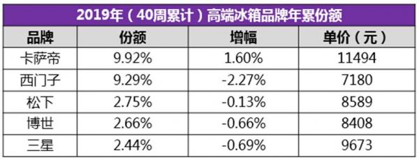 高端冰箱年累数据TOP5:除卡萨帝外,都是欧日韩品牌
