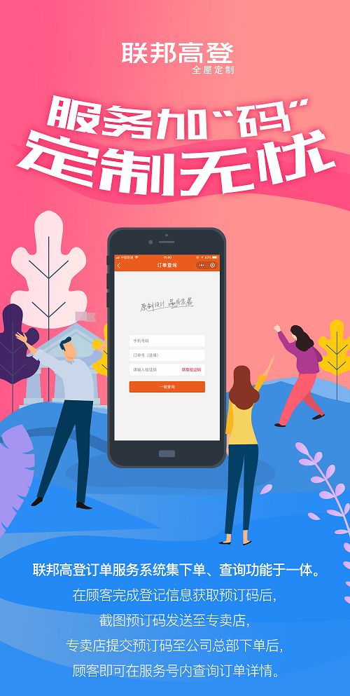 联邦高登订单服务系统已于2019年7月15日起全国运营上线,客户需通过“佛山联邦高登家私有限公司”服务号正确获取预订码并截图发送至专卖店销售人员,以完成下单操作。