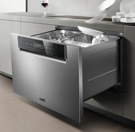 华帝干态洗碗机的抽屉嵌入式设计,匹配橱柜操作刚刚好。
