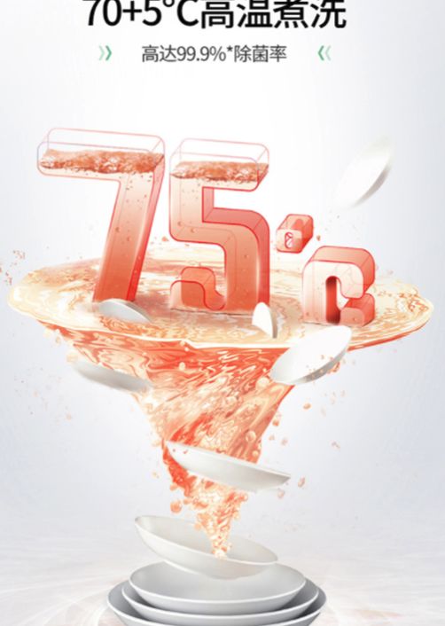 常规的洗碗水多数是70℃,能够有效的消灭大多数的有害细菌。华帝干态洗碗机将温度提升到75℃,既能是餐具能够承受的温度范围,也进一步提升了杀菌消毒的作用。据广东微生物分析检测中心的检测报告,华帝干态洗碗机除菌率高达99.9%,几乎不用顾虑杀菌不干净的问题。另外,相比消毒柜的臭氧杀菌技术,可能有些用户对那种难闻的气味还存在不舒适感,而高温杀菌是没有任何气味的,体验起来也是更好一些。