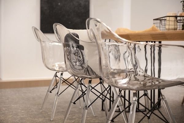 餐厅区域延续客厅的水磨石+白墙基调,原木餐桌恰到好处地运用,赋予空间和谐、亲切的质感。透明的魔鬼椅是餐厅的一大亮点,轻盈通透的视觉效果,让空间更显简约与时尚,充斥着神奇的魔力一般,让人倍感舒适惬意。