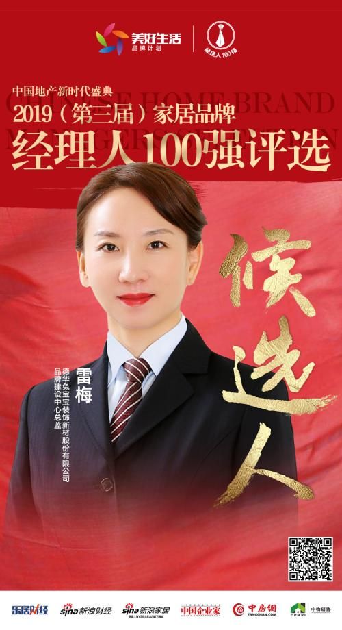 快讯:兔宝宝雷梅获提名参选2019中国家居品牌经理人