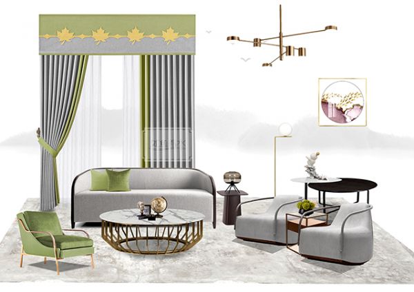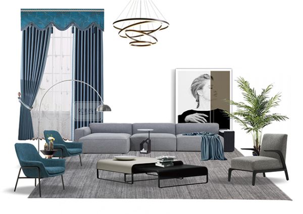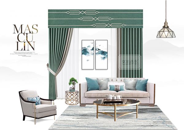 买全屋窗帘/三室二厅(面料25米内,2个布版任选1915、1916) (含带钩、垂工艺高2.66以内)