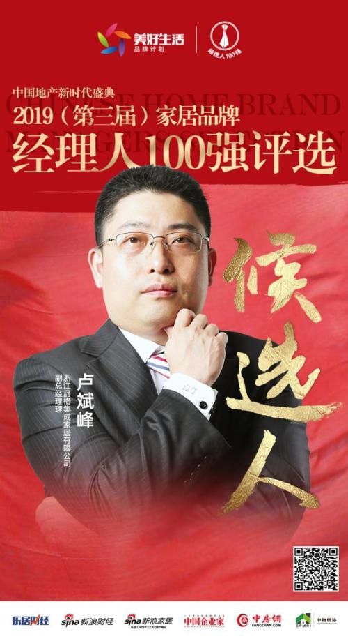 新浪家居讯 由乐居财经、新浪财经、新浪家居、中国企业家、中房网联合主办,中国房地产业协会、中国物业管理协会、全国工商联家具装饰业商会共同指导的“家国同梦——2019年(第三届)中国家居经理人评选”活动正式启动。品格高端顶墙副总经理卢斌峰获媒体提名,进入“2019中国家居品牌经理人100强”评选。