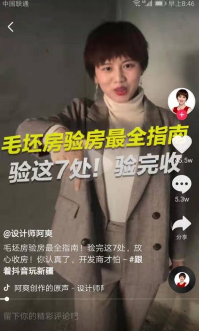新房装修如何下手?毛坯房如何验收?……粉丝们每天看到这些装修“干货”,纷纷表示好想聘请大V来帮自己房子装修!的确,之所以装修设计“抖音达人”能够火爆,也反映出当前人们在装修上有着很多“困扰”,无奈现实生活中又无法解决,只好通过“抖音”提前Mark一些攻略。