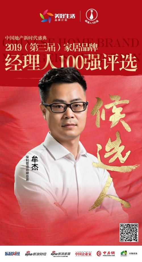 新浪家居讯 由乐居财经、新浪财经、新浪家居、中国企业家、中房网联合主办,中国房地产业协会、中国物业管理协会、全国工商联家具装饰业商会共同指导的“家国同梦——2019年(第三届)中国家居经理人评选”活动正式启动。保利管道品牌总监牟杰获媒体提名,进入“2019中国家居品牌经理人100强”评选。