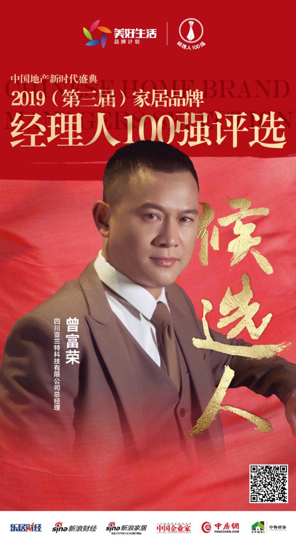 亚蓝特曾富荣获提名参选2019中国家居品牌经理人100强