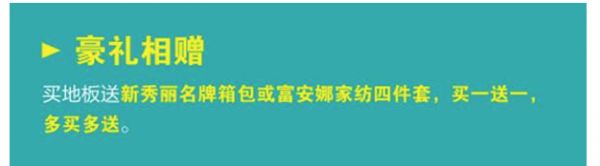 活动期间,买宏耐地板就送新秀丽名牌箱包或富安娜家纺四件套,买一送一,多买多送。