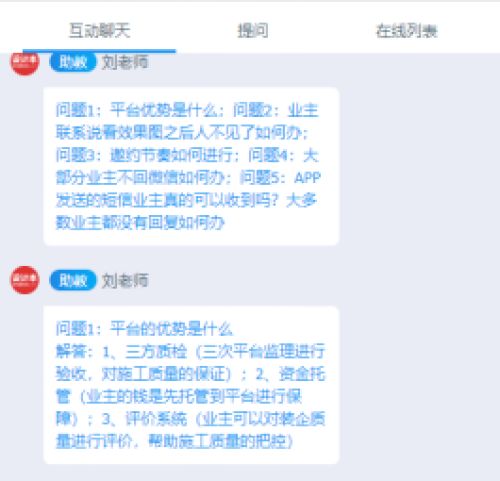 数据显示,直播中一共有1979名装企员工在线参加了本次培训。课堂上,学员们的表现十分踊跃,大家在提问环节积极发言,把自己的问题及时反馈给老师,希望得到专业的指导。