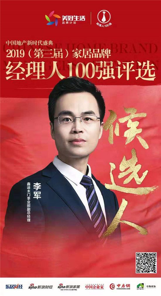 新浪家居讯 由乐居财经、新浪财经、新浪家居、中国企业家、中房网联合主办,中国房地产业协会、中国物业管理协会、全国工商联家具装饰业商会共同指导的“家国同梦——2019年(第三届)中国家居经理人评选”活动正式启动。鑫迪事业部副总经理李军获媒体提名,进入“2019中国家居品牌经理人100强”评选。
