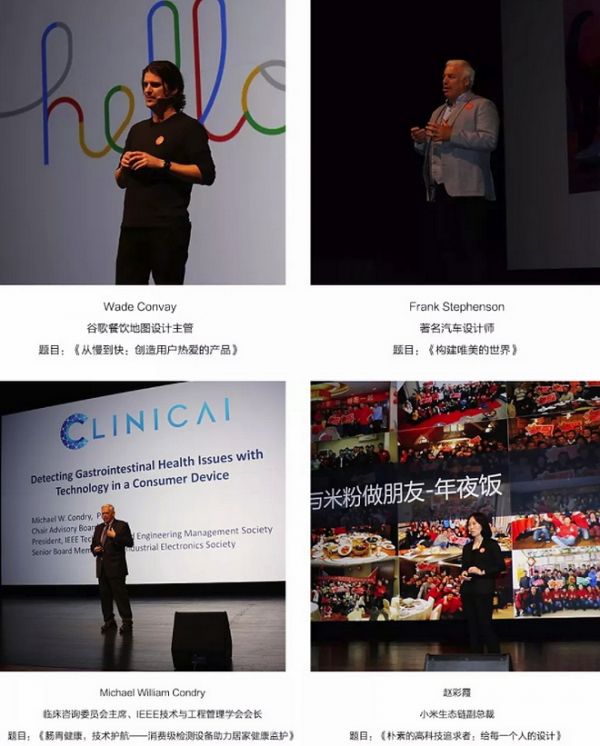 在国际论坛上,IEEE技术与工程管理学会会长Michael William Condry,知名策划公司8公司创始人Tim Kobe,ABB资深主任科学家庞智博 ,著名汽车设计师Frank Stephenson,小米生态链副总裁赵彩霞,谷歌餐饮地图的创意总监Wade Convay分别作了精彩的主体演讲。