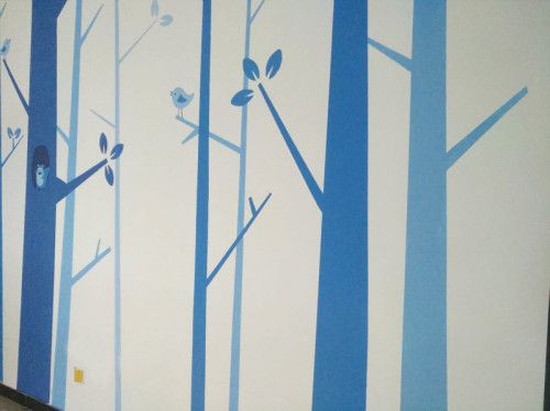 1、 首先墙画的图案和色彩要服从整体设计风格。