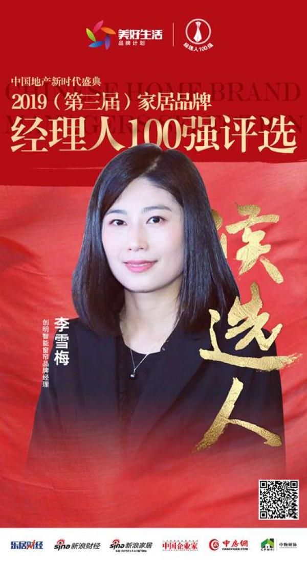 创明智能窗帘李雪梅提名参选2019中国家居经理人100强
