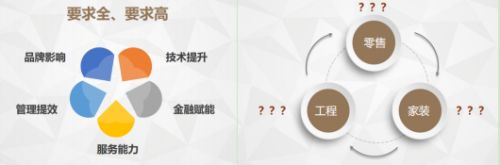 最后,他认为目前精装市场行情有“要求全,要求高”两个风向,且需要五方面着手,做到“品牌有影响,服务有能力,技术能提升,金融可赋能,管理可提效”。因此,他认为,在工程、家装、零售三方面寻求新型定位与稳定关系,尤为重要。