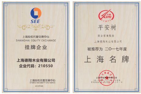 平安树的锐意进取、奋力拼搏,近年来平安树已在全国一二线城市设立了几十家直销分公司、近千余家加盟连锁店、形象店,平安树品牌产品远销国内。并凭着高品质、高口碑,已经连续多年被评为“上海十佳诚信品牌”“全国信得过企业和信得过产品”,2017年还荣获上海名牌称号。2017年2月,平安树在上海股权交易中心挂牌上市,成为中国板材市场具有一定影响力的板材品牌之一。