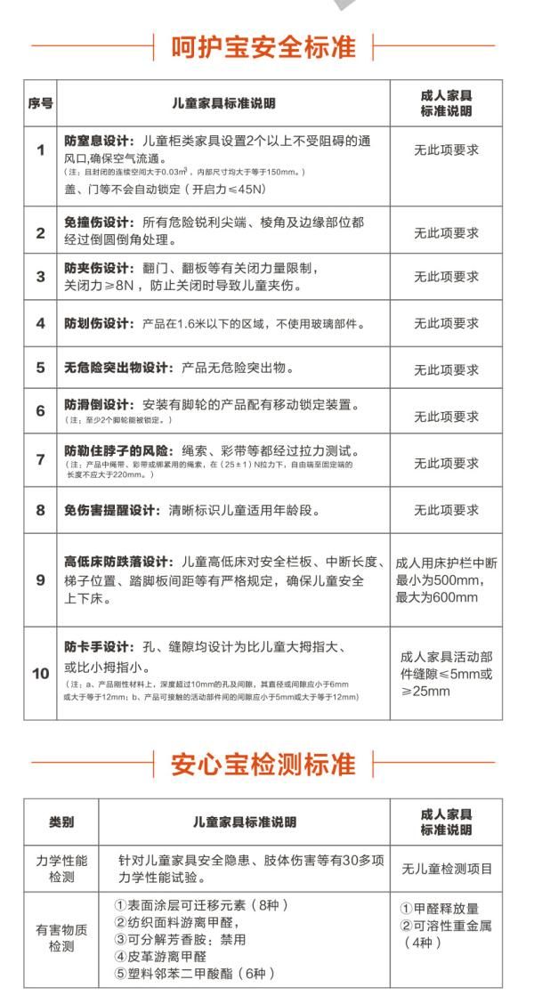 儿童家具顾名思义是专门为儿童生产制作的儿童家具,儿童家具也有自己标准,2012年8月1日,《儿童家具通用技术条件》作为我国首部针对3-14岁儿童出台的国家标准,该标准明对儿童家具的标识、安全、环保等比成年人家具更为严格。