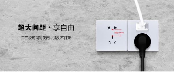 因为是大面板设计,所以二三极插座也是大间距设计,这个不意外,但是这个真的非常实用,笔者还是要赞一下!