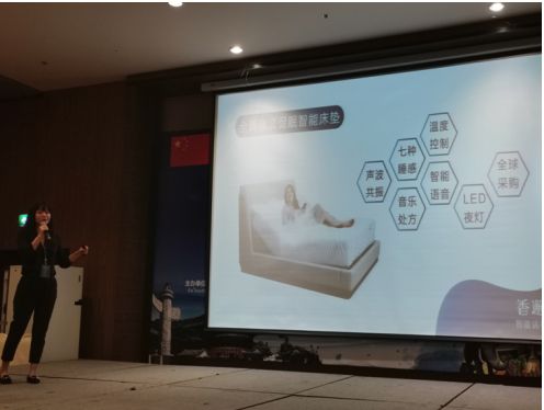 在大会的技术竞技交流会中,香邂品牌代表刘芮在大会上分享了全新的研发成果并发表了《科技力量智造健康睡眠》主题演讲。其主打睡眠产品“音波促眠智能床垫”让健康睡眠进入智能时代,受到了大会的高度赞同!