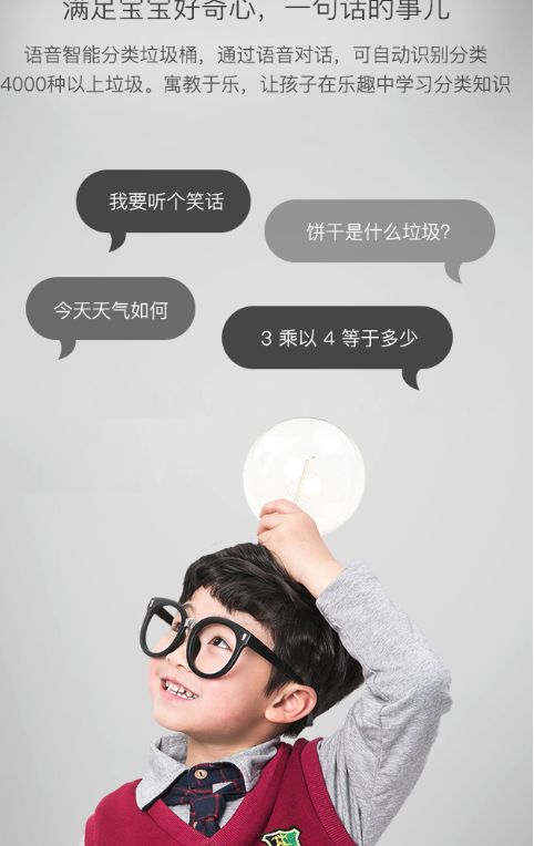 垃圾分类,从“小”开始。在威林小威语音智能分类垃圾桶的芯片中,内置了4000种以上的垃圾分类信息,你可以通过询问让智能语音助手得知垃圾的类别。对于家里的小孩来说,非常有教育和科普意义,语音互动的方式也让环保意识提升的过程变得充满趣味。