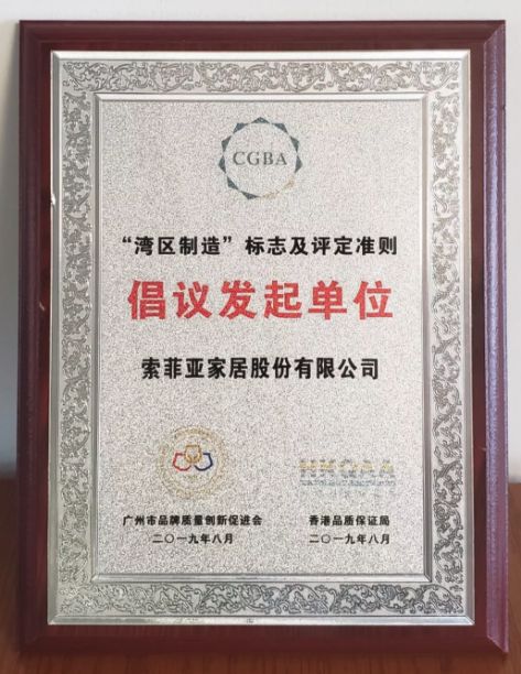 今年8月,在“湾区制造”标志及评定准则启动仪式上,索菲亚家居凭借着出色的表现,成为了“湾区制造”标志及评定准则应用推广倡议单位,为大湾区赋能。“据悉,湾区制造”由评定准则和标志构成,企业申请使用“湾区制造”标志,必须符合“湾区制造”评定准则。在首批加入应用推广倡议的60多家企业中,均是其行内前三名的龙头企业,这意味着索菲亚家居已跻身行业前列。