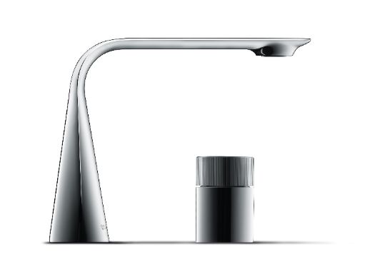 位于D.1双孔龙头右侧的单把手呼应出水口的超平外观,营造出清晰和谐的布局。D.1z还可选配旋转把手,优化安装定位,更好地和碗盆、台面连接。