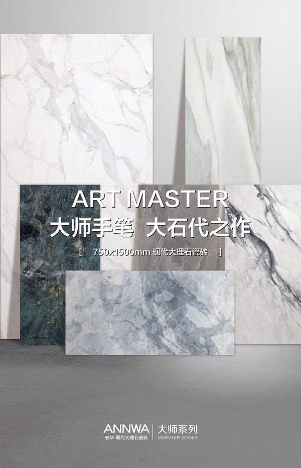 安华瓷砖“大师”系列鉴于西方顶级大师艺术的作品中汲取灵感,于现代大理石瓷砖纹理之上,融入艺术美学,在色彩、纹理线条及构成上,追求现代简约,只为让艺术融入生活,传达简约生活方式之美,更加契合现代人的审美。
