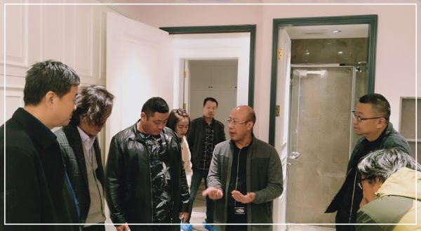 中和佳园装饰公司总经理何从伟对参观者一行介绍道:业主从事舞蹈教育培训,艺术修养很高,对设计要求非同一般。我们经过10个多月的施工,完成了硬装部分,软装还没有进场,今天请家装协会领导来参观指导品鉴,也是为了取长补短,提高技艺。