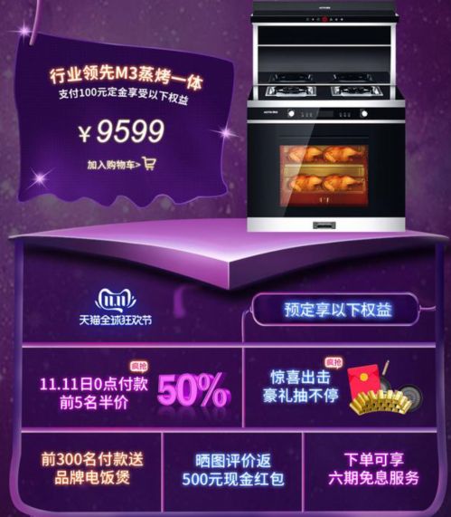一波接一波的优惠来袭,你还没有心动吗?别再观望了,趁着一年一度的双十一大促,买到就是赚到,赶紧抢购一台彰显高品质生活的奥田M3集成灶吧!