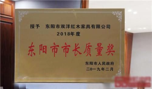 双洋红木荣获“2018年度东阳市市长质量奖”