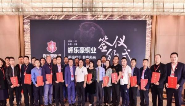 2019年11月3日晚,由辉乐豪铜业主办、北京中视蓝海企业策划有限公司承办的“辉乐豪铜业标准入户铜门新品发布会暨合作伙伴招商洽谈会”在上海绿地国际会议中心成功举办。