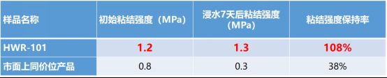 经试验对比:初始条件相同,7天后,雨虹HWR101高耐水超柔防水涂料与市面上同价位产品,粘结强度保持率仍优秀。