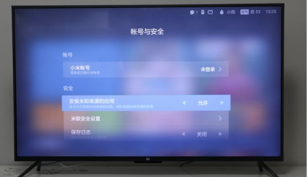 不过电视虽好,但怎么才能播放自己喜欢的影视剧呢?接下来小编就教大家观看高清视频!首先 在小米电视5英寸主页选择“小米电视设置”,找到“账号与安全”选项,将“安装未知来源应用”设置为允许;