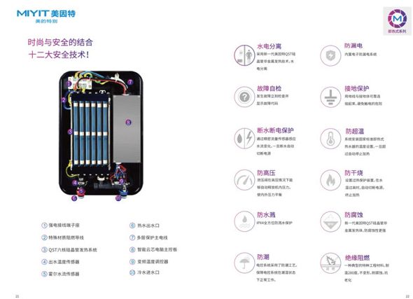 美因特即热式电热水器产品中,有十二大安全保护技术: