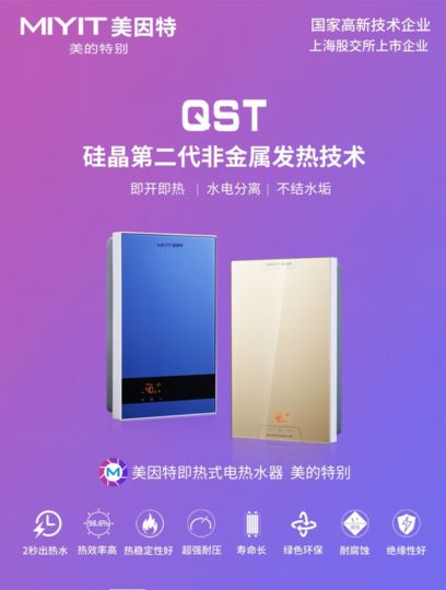 根据美因特总经理李卫泽介绍,美因特产品采用的是自主研发电热水器的核心加热技术、电控和恒温技术,美因特即热式电热水器采用的是硅晶QST非金属发热技术,特点就是水电分离,不结水垢,从物理上避免了漏电的风险,确保安全。