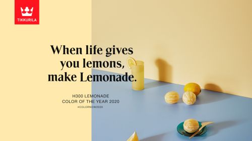 芬琳漆在本次展会上发布的2020年流行色代表色彩是H300 Lemonade,这种色彩灵感来自于柠檬水,它是时尚界与装饰界颇为流行的黄色系趋势延伸,倡导着一种积极乐观的情绪:如果在生活像柠檬一样让你酸,把它榨成甜美的柠檬水吧!提醒人们生活中时刻存在着积极的一面、存在着改变现状的机遇,延续了去年流行色K319 Flamingo的美好寓意。