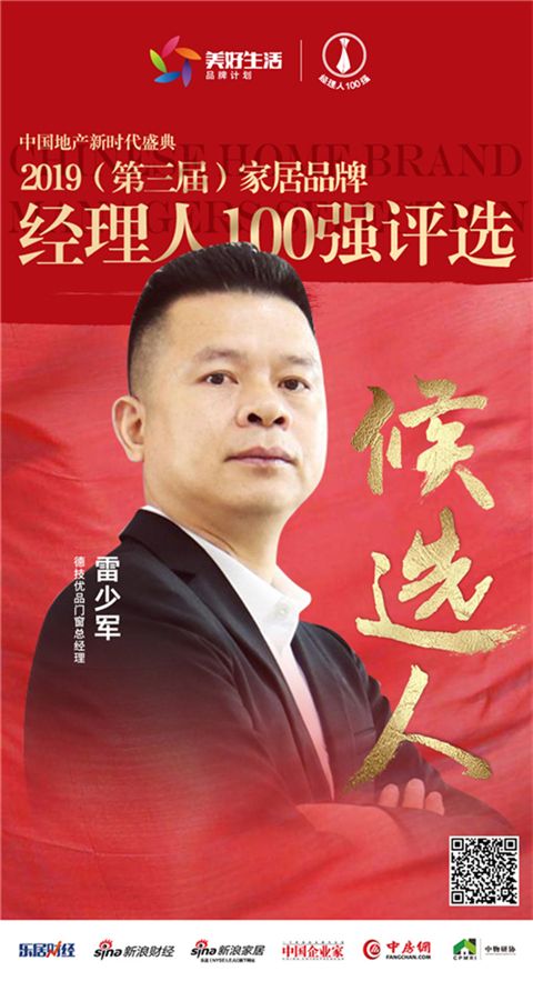 由乐居财经、新浪财经、新浪家居、中国企业家、中房网联合主办,中国房地产业协会、中国物业管理协会、全国工商联家具装饰业商会共同指导的“家国同梦——2019年(第三届)中国家居经理人评选”活动正式启动。德技优品门窗总经理雷少军获媒体提名,进入“2019中国家居品牌经理人100强”评选。