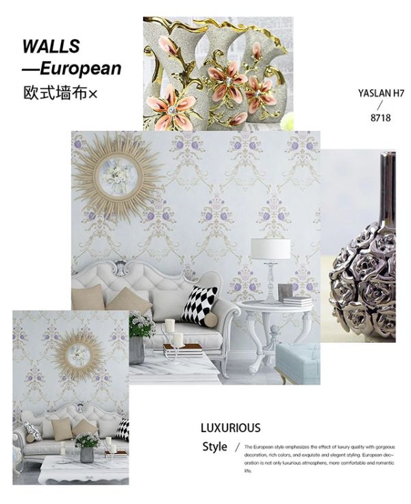 墙布在家庭装修中使用面积大,装饰效果好,对于房屋整体装修风格起着极大作用,所以选择墙布需慎重,特别是现代墙布制作工艺越来越精湛,出现了各种风格的墙布,其中以欧式墙布为人们所热捧。今日就和小编一起来欣赏一下雅诗澜欧式墙布的装饰效果吧。