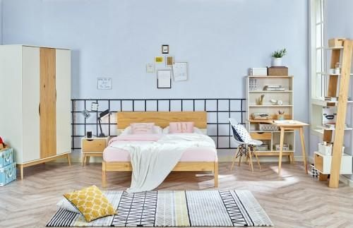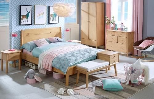 喜梦宝家居驯鹿卧室套系,搭配明亮的蓝色或粉色床品,能够增添卧室的戏剧性,增强视觉冲击感,加上精美的装饰品与艺术吊灯的点缀,使整个空间的设计浑然一体,让人感受到秋季的温暖、柔和。