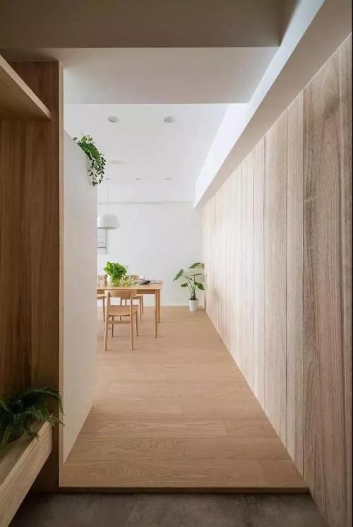 门厅入口处,以原木色做铺陈,让视野变得更加开阔。