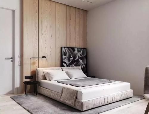 简约的卧室,没有多余的家具,留一床、一灯、一椅,营造最放松身心的感觉。
