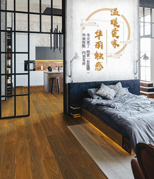 不管是实木地板还是强化地板,我们都能见到胡桃木纹理的身影,但是将自然软木做成胡桃木纹理的地板却很少见。得高WISE软木经典胡桃木地板就是这样一款让人着迷又心动的地板。它打破了人们对软木花色的传统认知,将胡桃木木纹与自然软木和谐结合,黄棕与深棕一浅一深相互拼接,大气而优美。其深色纹理细腻绮丽,一圈圈的仿年轮仿佛一个个赏心悦目的图案,并饱含岁月的痕迹,细看每一道纹都像在说一个故事,百看而不厌。纹理不张扬,恰到好处的细腻温润给人亲近自然的感觉。
