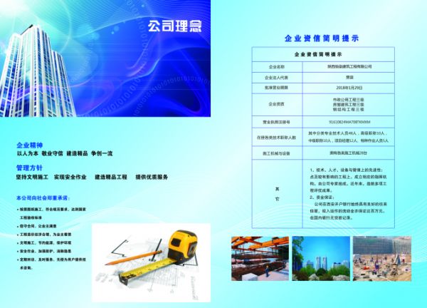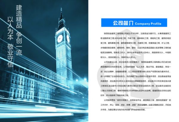 公司始终贯彻“坚持文明施工,实现安全作业,建造精品工程,提供优质服务”的工作方针,并以“团结,求实,拼搏,进取”的企业精神,立足工程建设项目,开拓地方市场,为建设事业与地方经济的腾飞作出应有的贡献。