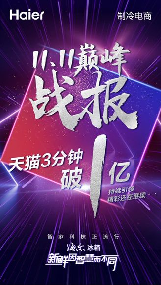 双11冰箱战报:多品牌均有上涨,海尔份额第一并获8连冠