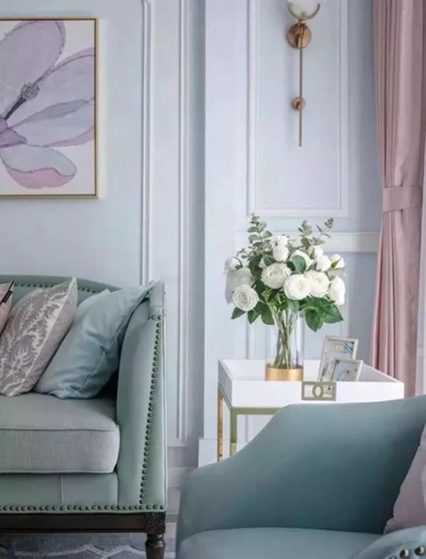 法式装修风格拒绝浓烈的颜色,偏爱一些清新淡雅的蓝色或是绿色,比如一抹淡淡的小碎花,也就是法式装修风格的美好演绎,所以在法式装修软装搭配上我们就不要选择那些色彩比较浓烈鲜艳的墙布,而要选择清新淡雅的浅色调碎花墙布,柔美的色彩散发着法式的浪漫风情。