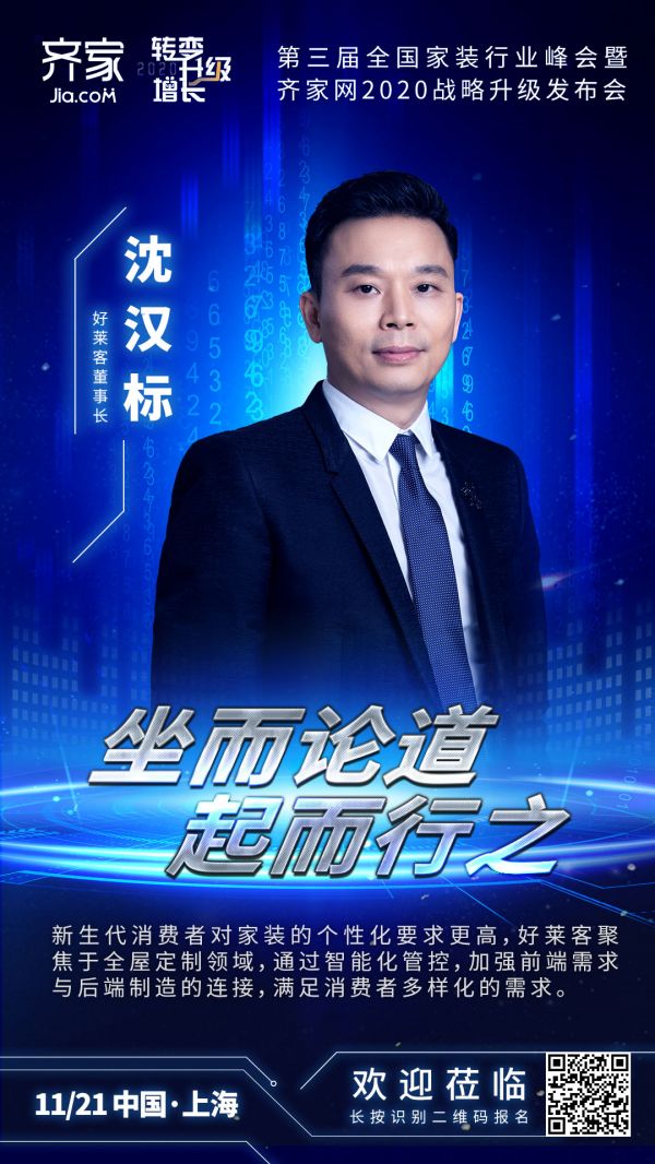 好莱客董事长沈汉标确认出席齐家网第三届全国家装行业峰会
