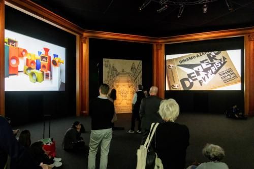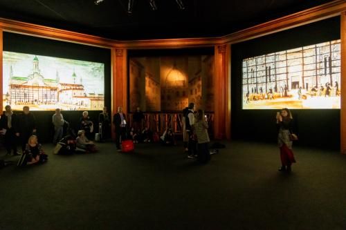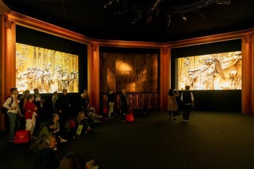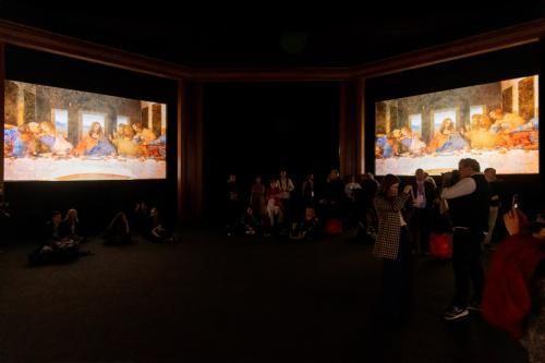 DE-SIGNO 是一个沉浸式的展示装置,它以一种包容性和令人兴奋的方式结合运用了电影与戏剧场景中的语言。它能够显示出一系列的图像和音乐,很好地展示了列奥纳多•达芬奇的艺术设计手法,以及文艺复兴时期艺术工坊的勤勉付出与当代意大利设计公司技艺与成就之间的联系:这一切都源自于意大利的伟大艺术旗帜之下。