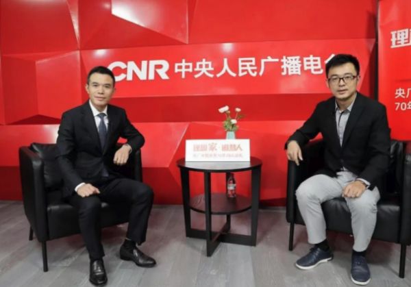 百利玛门窗董事长(左)接受央广网记者(右)采访